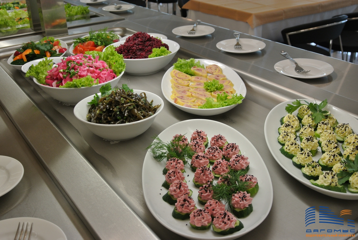 Оздоровительный комплекс «Дагомыс» является здравницей федерального значения, которая относится к ведомству управления делами президента РФ. Отдых и лечение здесь организуются по высшему разряду, это касается и питания. В комплексе «Дагомыс» трёхразовое питание по системе «шведский стол» для стандартных путевок и программ и двухразовое питание по этой же системе для путевок выходного дня. В рационе наших гостей разнообразные блюда из высококачественных, свежайших эко-продуктов местных производителей, при приготовлении которых используются современные технологии термообработки, которые позволяют максимально сохранить в блюдах как можно больше витаминов и микроэлементов. Наши квалифицированные повара порадуют отдыхающих разнообразными блюдами из мяса, морепродуктов, вкусными гарнирами и салатами, изысканными закусками, ароматной выпечкой и восхитительными десертами, горячими и холодными напитками. На столах отдыхающих круглый год разнообразные фрукты, овощи и зелень. В оздоровительном комплексе «Дагомыс» работает 9 ресторанов и 7 баров как в корпусах, где отдыхающих ожидают стильные интерьеры, изысканная кухня и высокий уровень сервиса.