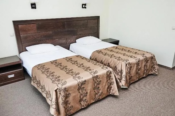 В номере: багажная тумба, зеркало, две полутораспальные кровати, тумбы, стулья, шкаф-купе, телевизор, светильник, электронные замки, Wi-Fi, телефон