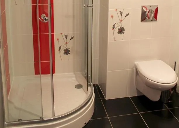 Санузел: душевая кабина, унитаз, раковина, гигиенические средства, банные полотенца, фен